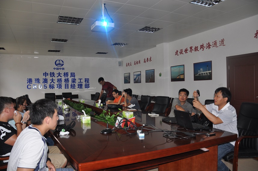 图18 向工在项目部会议室给实践团的同学们介绍港珠澳大桥工程关键技术