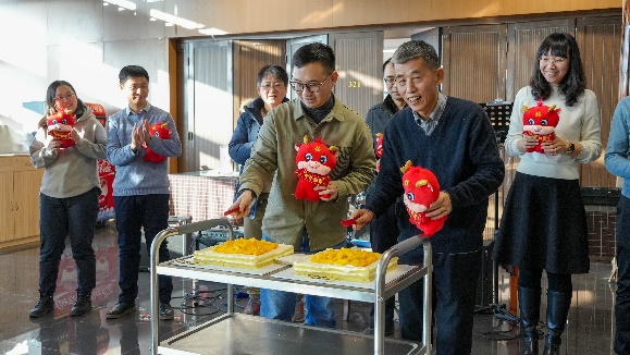 2024年是农历甲辰龙年,学院组织属龙的老师为大家抽奖、分发蛋糕并为2023年光荣退休的教师代表王毅娟和侯云芬老师献上了祝福。