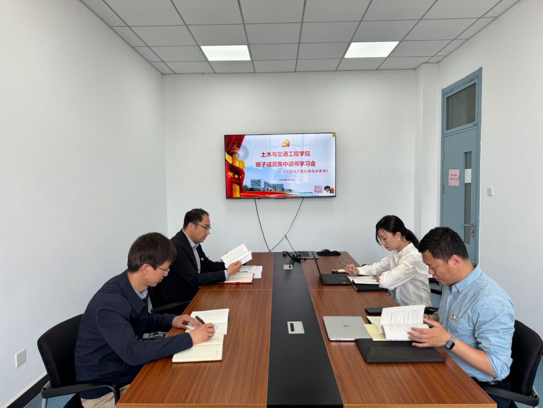 5月7日,土木学院党委组织班子成员集中读书学习,专题学习《中国共产党纪律处分条例》。学习会由学院党委书记车晶波主持。