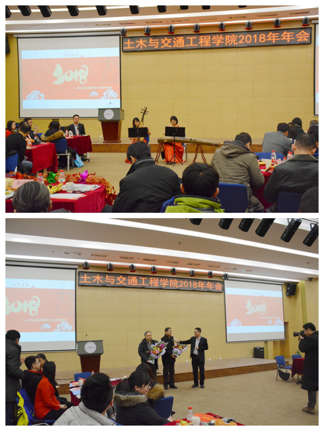 1月16日,时值2018年新春佳节到来之际,土木学院分工会在图书馆建本报告厅组织举行教职工新春联欢会。全体教职工、退休老教师代表欢聚一堂、共贺新春,联欢会由学院分工会会长冯宏岳主持。