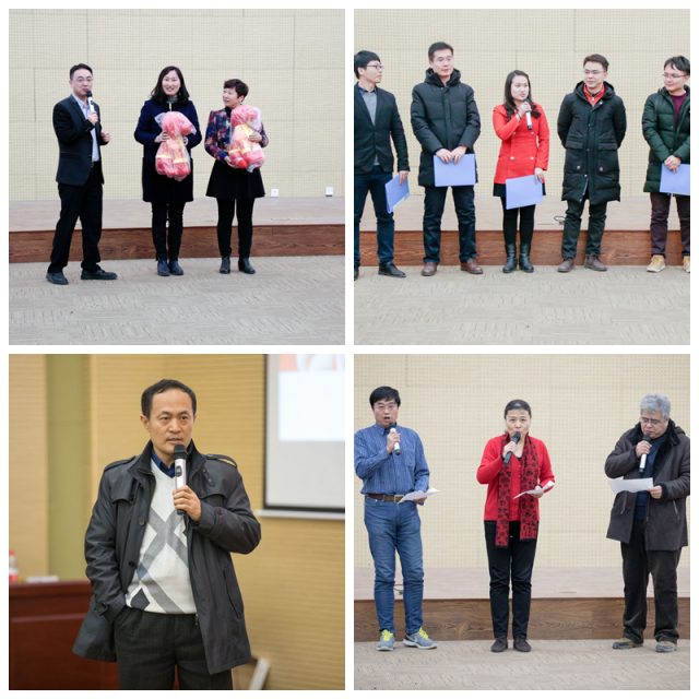2018是狗年,张艳霞老师和曲秀姝老师作为属狗的教师代表,为学院和全体教师送上了新春祝福。新教师们表演了诗朗诵《我是一名教师》,用阳光、蜡烛、播种人自喻,表达了成为人民教师自豪的心情和无悔的选择。戚承志老师的独唱《莫斯科郊外的晚上》,教师代表董军、李地红和刘小红的合唱《小路》赢得了全场阵阵掌声。
