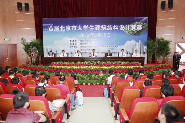 9月15日下午,由北京市教育委员会主办,北京建筑工程学院承办的首届北京市大学生建筑结构设计竞赛在我校大兴校区圆满闭幕。校长助理张大玉、中国建筑科学研究院PKPM设计软件事业部主任顾维平、金年会官网党总支书记何立新、金年会官网院长吴徽、金年会官网副院长龙佩恒、金年会官网党总支副书记朱静及14所北京高校的教师和学生共计500余人参加了闭幕式。闭幕式由我校学生工作部部长杨光主持。