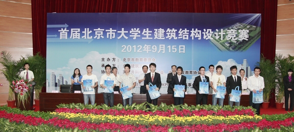 评委会主席宣布完竞赛初评名单后,与会的各位领导为初评获奖队伍颁发了奖品,奖品由大会的协办单位中国建筑科学研究院PKPM设计软件事业部提供。以奖励获奖代表对及指导教师付出的辛勤工作。大赛的初评名单将由北京市教委进行公示后,正式对外公布并颁发获奖证书。