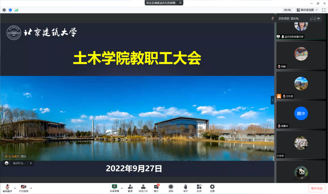 9月27日下午,土木学院召开全体教职工大会。学院全体教职工以线上线下相结合方式参加会议,会上,学院领导班子成员结合分管工作分别对接下来一段时间的工作安排进行了汇报。会议由学院党委书记韩淼主持。