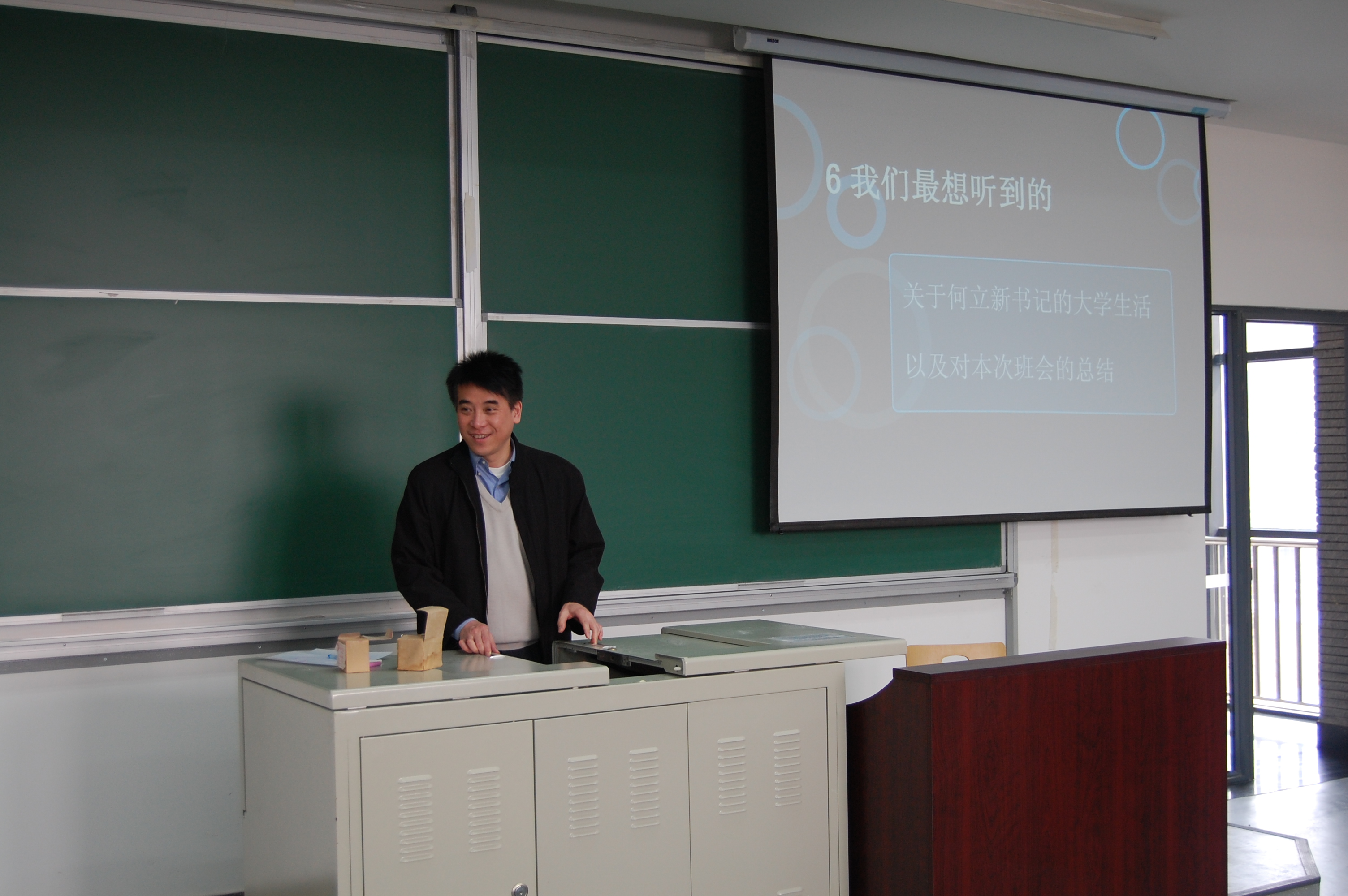 班会上,学院及学工部领导、班级导师、外语教师、专业课教师与同学深入畅谈,重点围绕新学期的学习、生活计划,尤其针对外语学习、备战四级、良好的班风学风的养成等方面进行探讨。