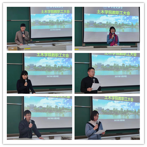韩淼做土木学院考核述职汇报。2021年,土木学院认真贯彻落实党的十九届六中全会精神,围绕学校“三风”专项行动,推动学院各项事业发展,各方面取得了显著成绩。