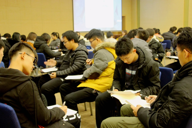 在人际沟通技巧环节,活动先以“快乐传真”、“阿三的故事”开场,让学生在活动中体验沟通的要素和方法。随后,苑泉从沟通的定义和有效性方向进行讲解,并借助“我说你画”的小测试让宿舍长感受单向沟通易产生误会,而双向沟通更便于人们交流。培训中苑泉强调:“沟通过程中,传递的更多是思想和情感,语言只占沟通信息的7%,更多信息是通过语调(38%)和可视性的外在信息(55%,如表情,身体姿势)体现出来,因此当宿舍出现矛盾时,面对面交谈更利于矛盾的解决”。