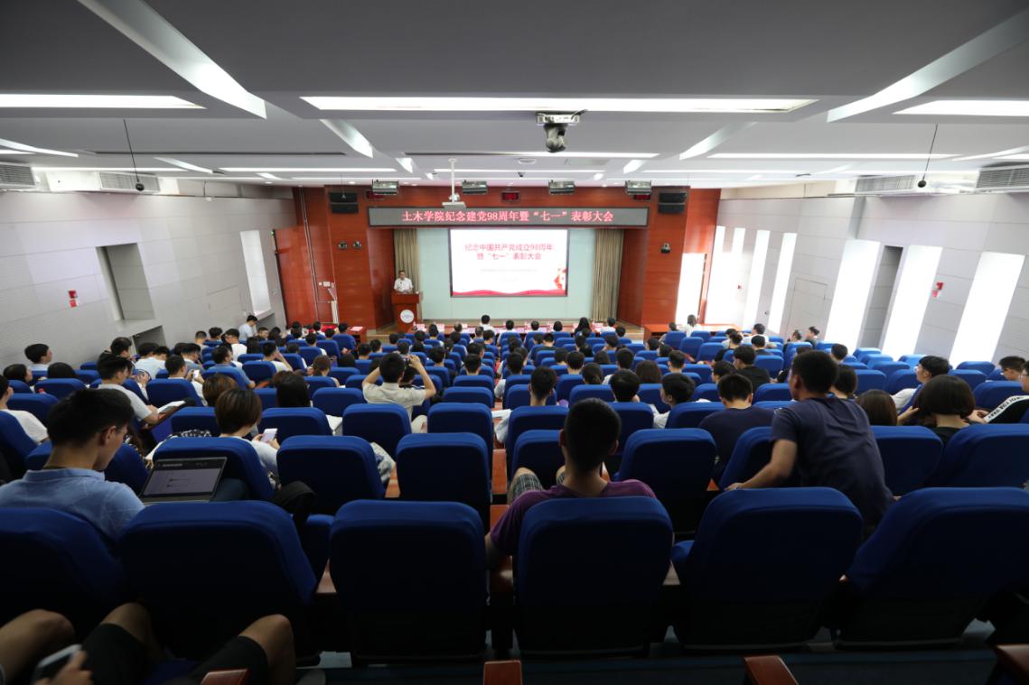 为纪念中国共产党成立98周年,全面展示一年来学院各学生党支部和广大学生党员贯彻落实党的十九大精神,充分发挥战斗堡垒作用和先锋模范作用,激励更多的土木学院师生党员坚定理想信念,奋力投身学院各项事业发展中,6月27日下午13:30,土木学院在学E报告厅隆重召开纪念建党98周年暨“七一”表彰大会,重温入党誓词,表彰学生先进榜样,传递青春正能量。土木学院全体领导班子,学校组织部副部长齐勇、研工部副部长黄琇、学工部副部长康健,土木学院教师党员代表,全体学生党员参加此次了大会。大会由学院党委副书记车晶波主持。