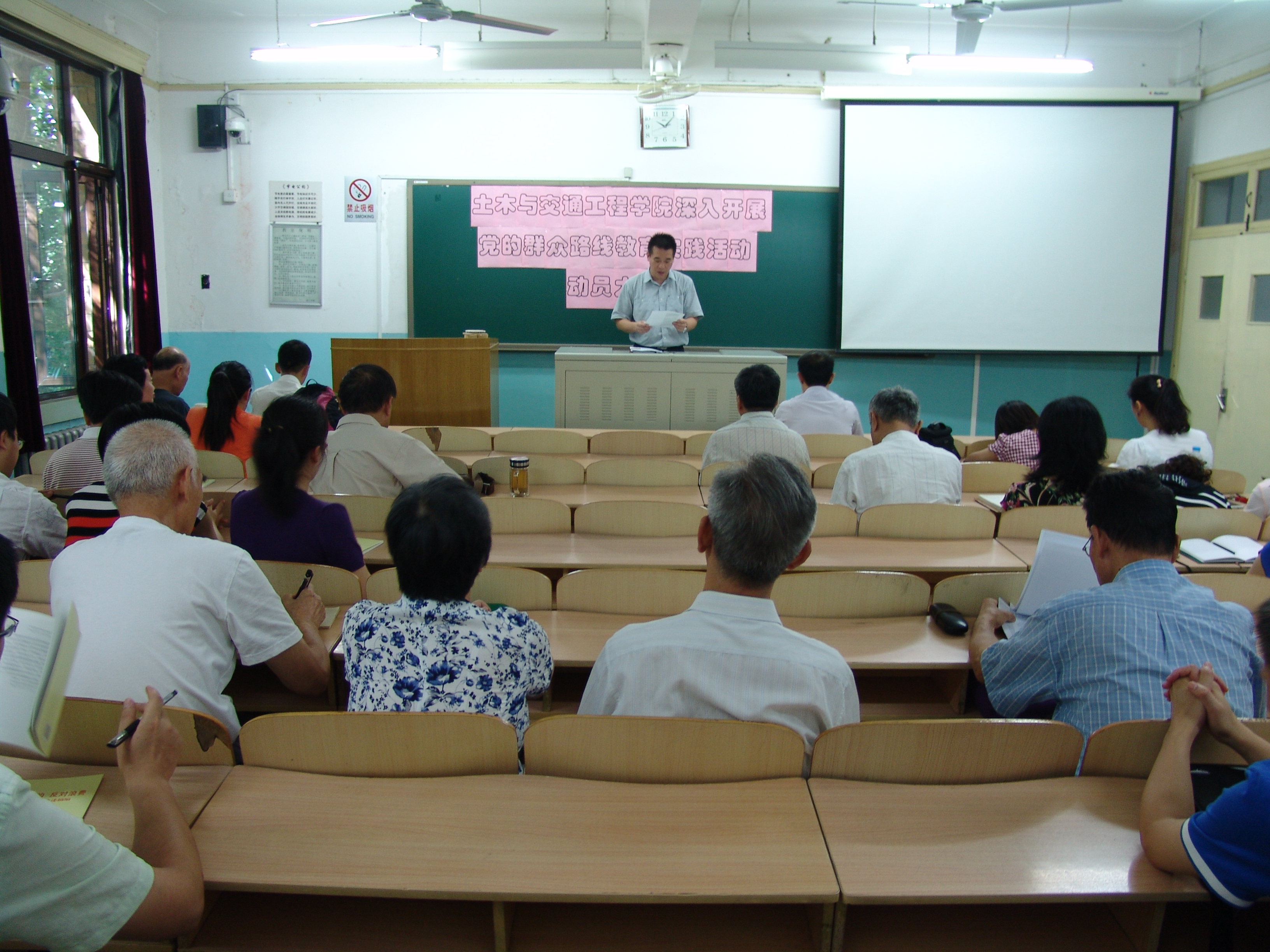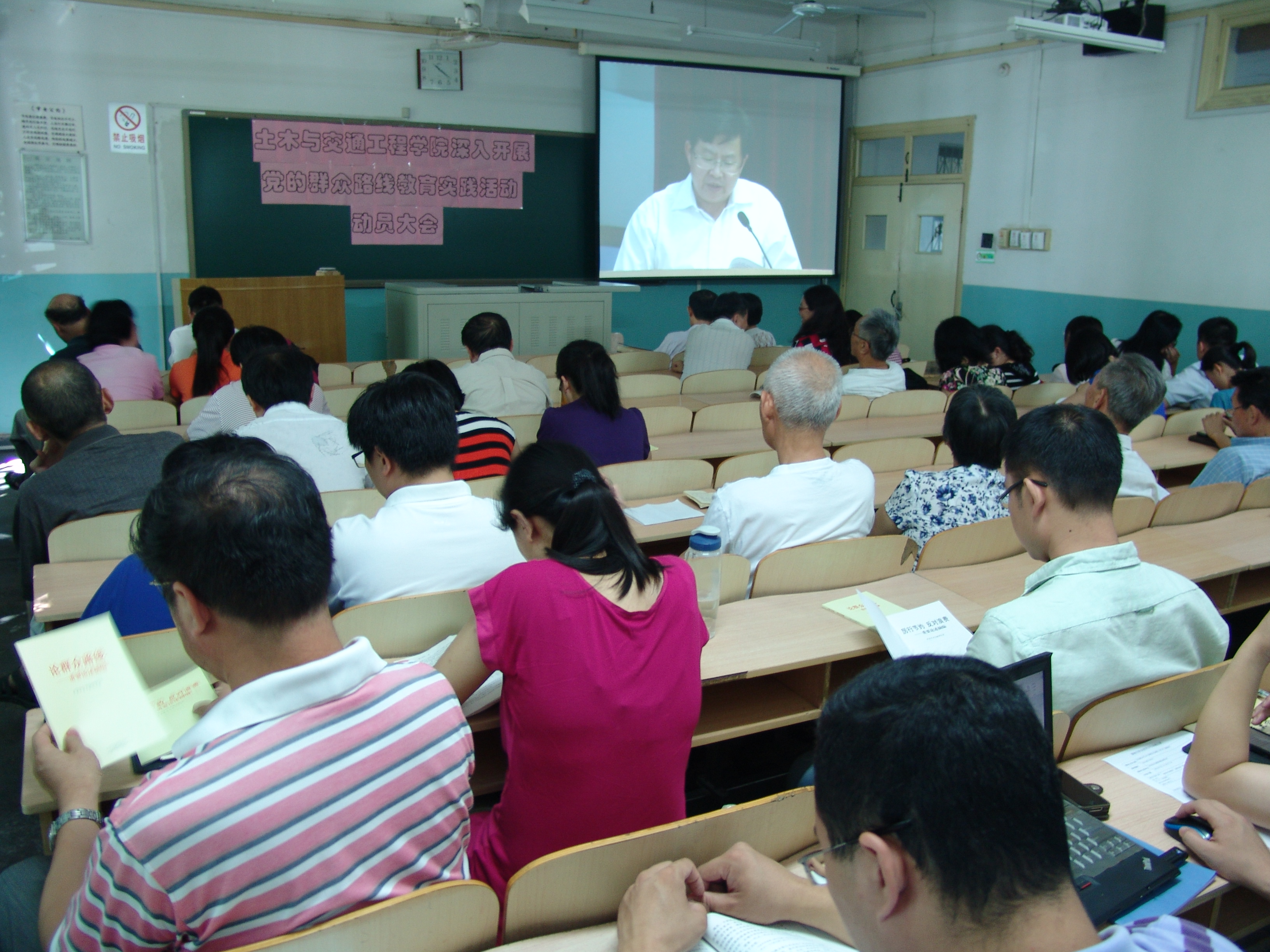 下午1点半,在教1-202召开了土木学院全体大会,学院全体教职工参加了会议。戚承志院长就暑期党政联席会对学院未来五年的发展规划做了详细的说明和解读,并特别强调促进事业的发展从而让每位同志都能享受到成功的喜悦是党的群众路线教育和实践的重要落脚点。