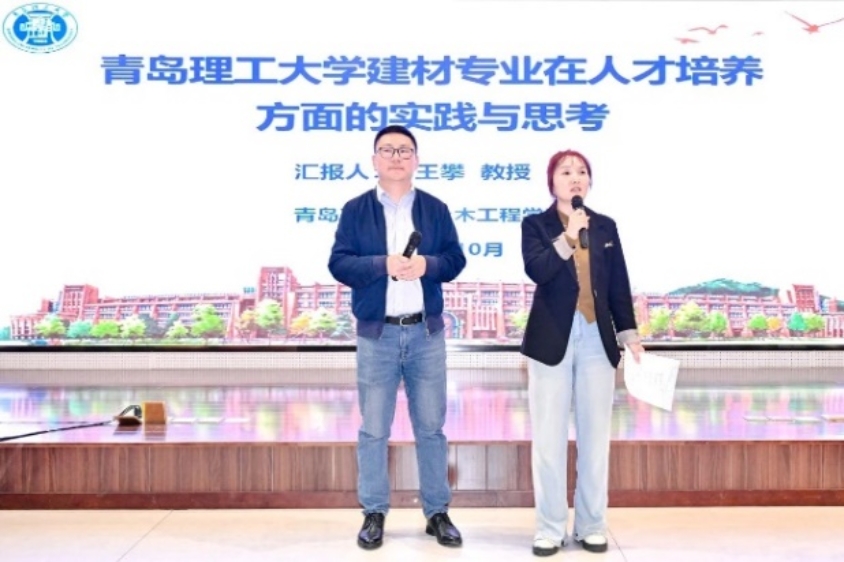 青岛理工大学教授王攀带来《青岛理工大学建材专业在人才培养方面的实践和思考》。王教授从政策引领、交叉融合、国际化视野、多维夯基等四个方面阐述了应用创新型人才培养方案的实施经验与成功方法,并发表了对于AI辅助教学的思考与见解。